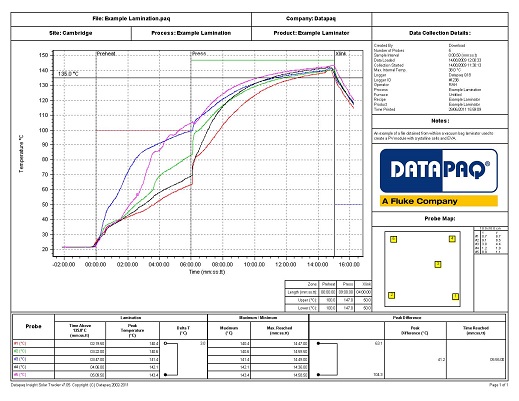 시스템이 라미네이터를 통과하여 종료된 후에 온도프로파일 정보를 다운로드하여 분석 할 수 있습니다.